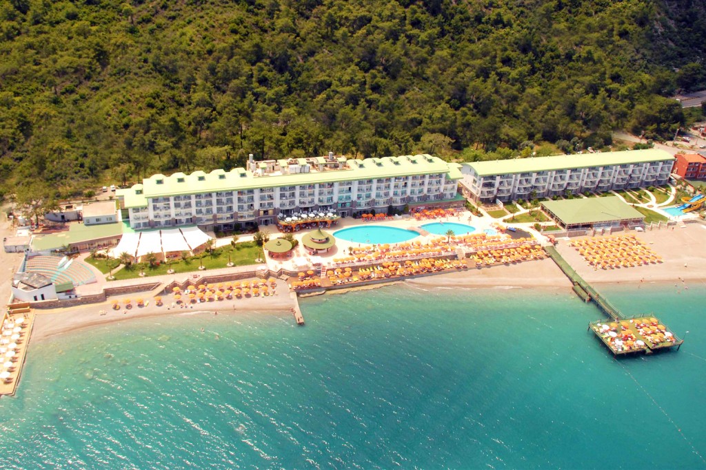 Grand Park Kemer**** est un hôtel 4 étoiles situé à Kemer en bord de mer. Il met à votre disposition sa plage privée. L’hôtel est situé à 10 km du centre-ville de Kemer, à 25 km d’Antalya et à 60 km de l’aéroport d’Antalya. C’est un hôtel à formule « Tout Compris » de 2 étages qui dispose de 305 chambres.